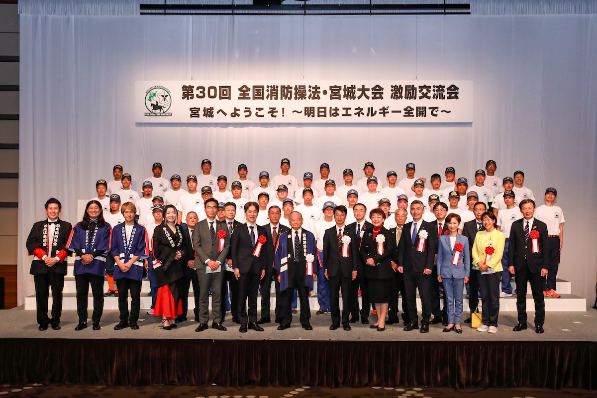 全国消防操法大会・全国女性消防操法大会にともなって行われている激励交流会に参加しています。選手やその家族などを激励していただいています。