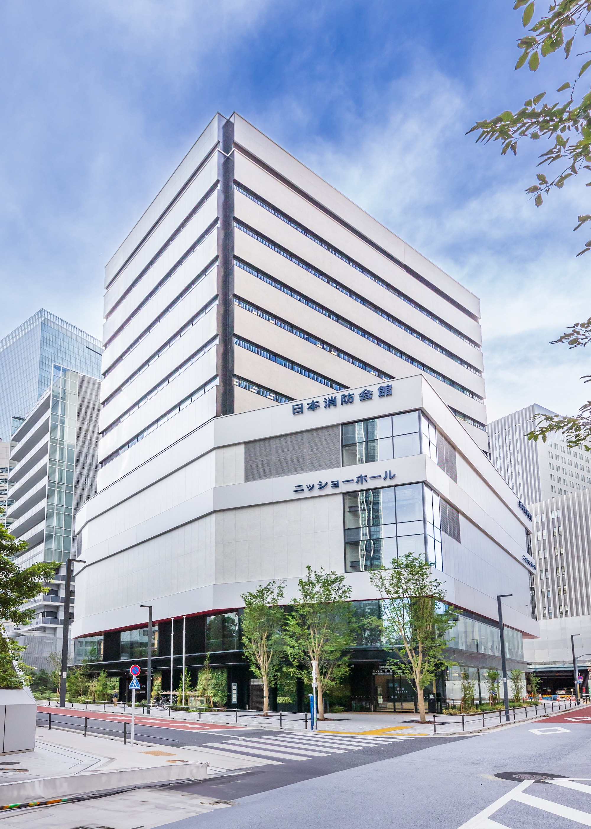 日本消防会館は、屋上に全国消防殉職者慰霊碑を安置するほか、主要な消防関係団体が多数入居しています。1階には日本消防防災情報センター、3階~5階には座席数1,000席を有するニッショーホール、2・6階には大中小の会議室を設けています。
