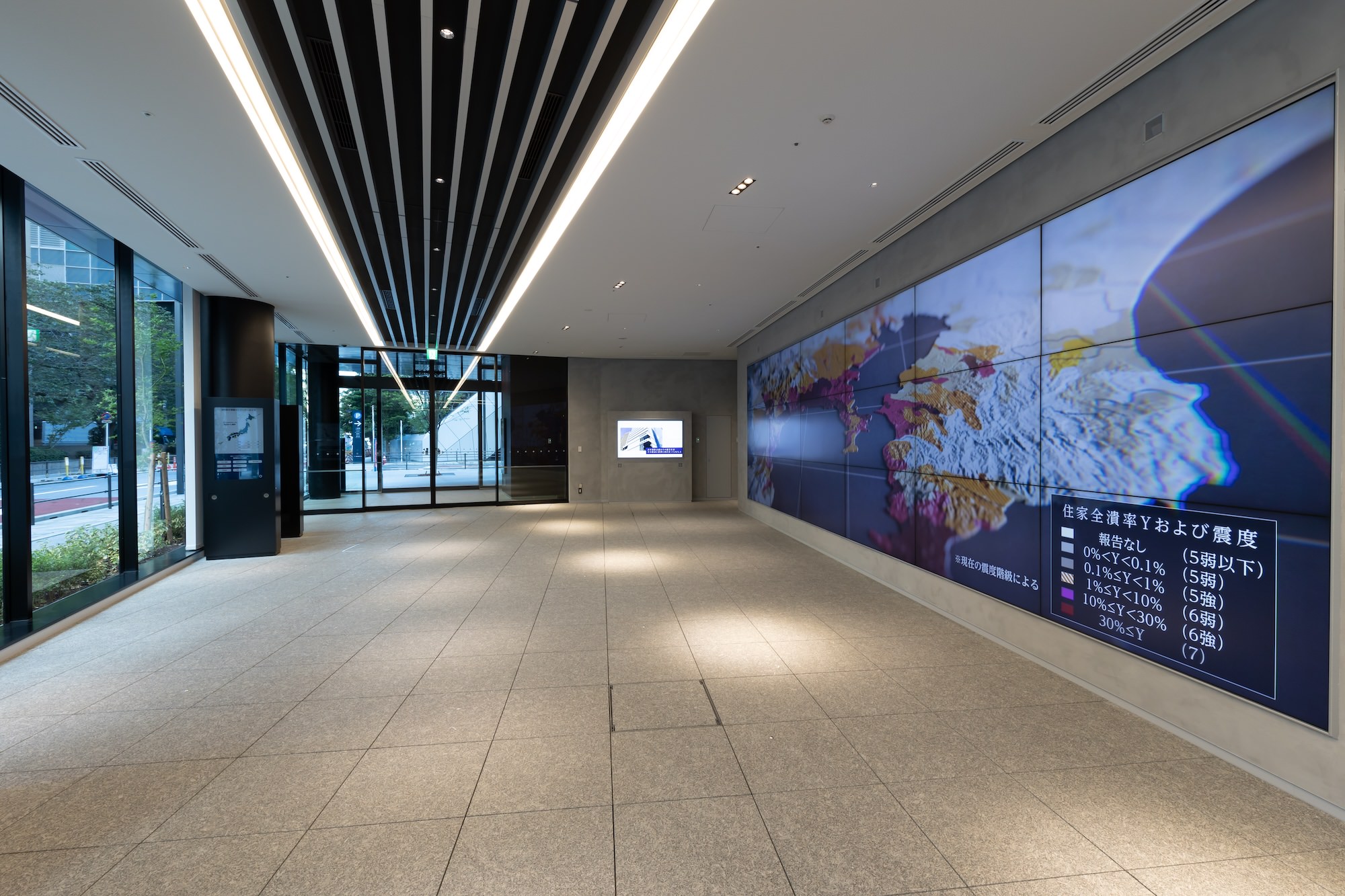 関東大震災、阪神淡路大震災の情報や、日本消防の沿革と現在の状況、海外の消防事情など、テーマごとにデジタルサイネージにより消防防災に係るさまざまな情報を展示しています。消防関係者はもとより、一般の皆様にもご覧いただくことを意識し、消防防災活動の一層の充実に関連する幅広い情報を提供することで、会館を訪れる皆様に興味を持っていただけるような内容になっております。