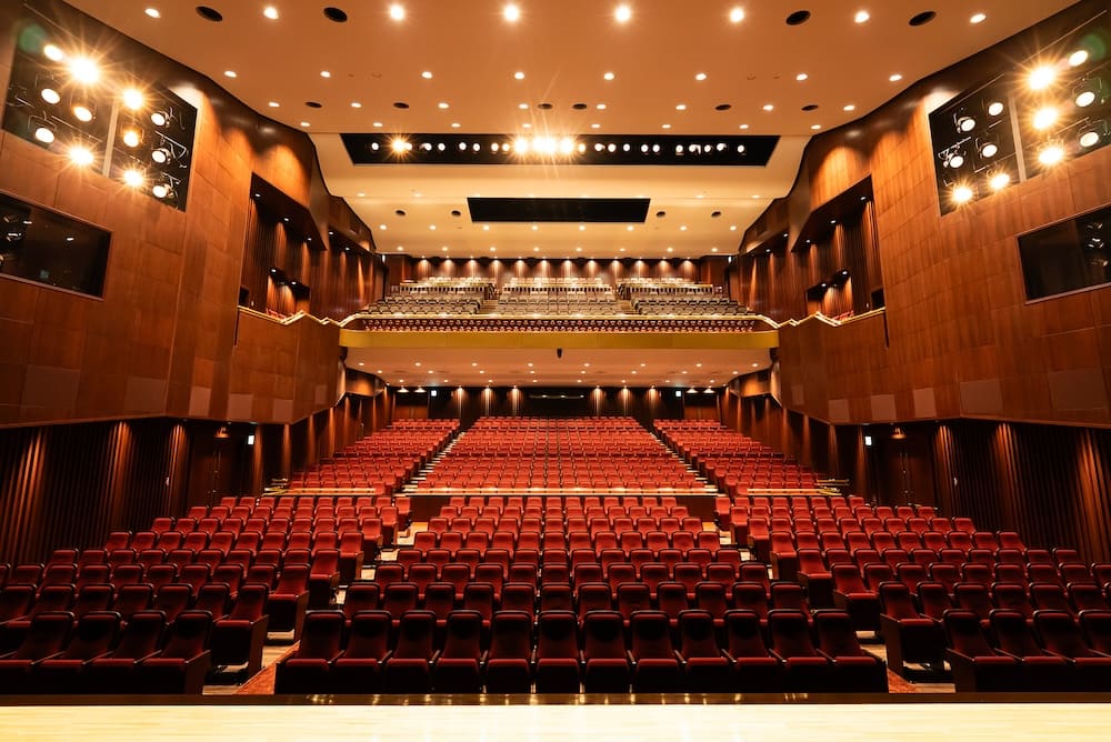 ホールは音響設備等が充実し、落ち着いた色調の客席です。座席数は1階・672席、2階・328席の合わせて1,000席(旧ニッショーホールは742席)に拡大。式典、会議、シンポジウム、研修等のほか、コンサート、映画上映等、多様なニーズに対応できるホールです。