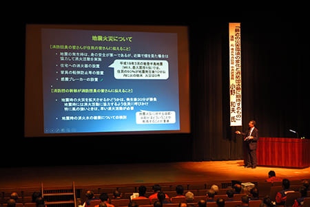 「最近の災害環境の変化と消防団活動に期待されるもの」と題した講演では、住宅火災の性状の変化を踏まえた対策と対応や、地震火災発生時の消防団員の役割と、初動体制の重要性について御講演いただきました。