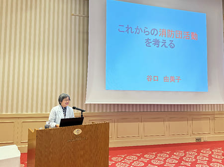 「これからの消防団活動を考える」と題した講演では、女性消防団員のこれからの活動について、新たな取り組み内容や課題等、経験談を交えながらお話いただきました。