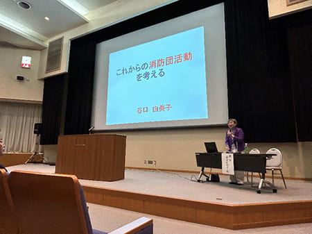 「これからの消防団活動を考える」と題した講演では、近年様相が異なる様々な大規模災害の発生に対し、女性消防団員としての新たな取組や課題について、経験談を交えながらお話いただきました。